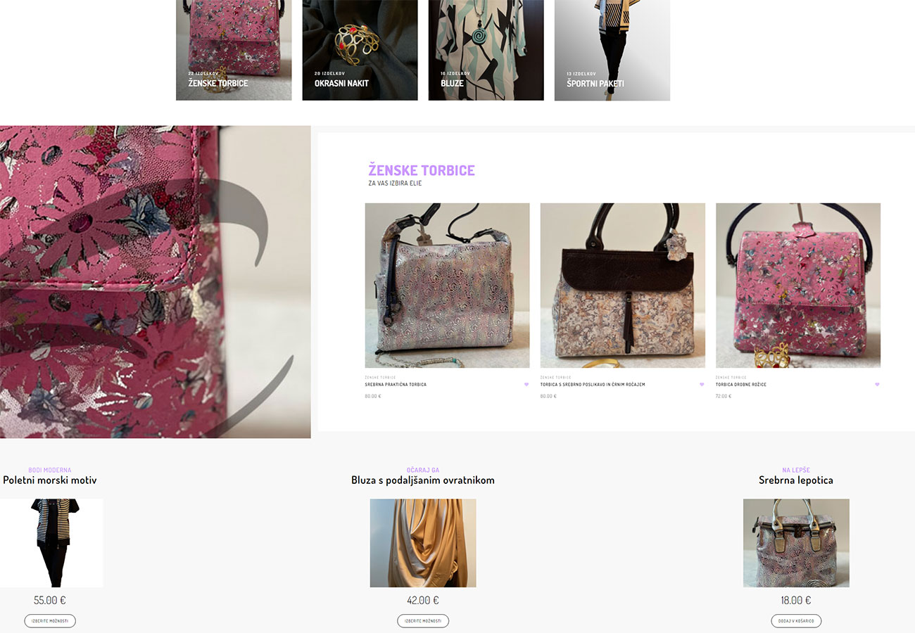 Dobrodošli na novi spletni strani podjetja Elie. Sva Petra in Eva ustanoviteljici nove spletne prodajalne in obenem tudi navdušenki nad modo. Podjetje sva ustanovili v letošnjem letu. Že samo ime Elie sva izbrali z razlogom. Osredotočili sva se na arabsko, malo versko razlago imena, ki pomeni nobel, višji razred, lahko bi rekli elita. V tem pomenu bi radi, da se ženske, ki bodo nosile izdelke s te spletne trgovine, tako tudi počutile. Ponujava malo drugačne, kvalitetne in elitne izdelke. Prve stranke ste nama še posebej pomembne, da se na podlagi vašega odziva tudi midve prilagodiva in povečava ponudbo na stvareh, ki so vam bolj atraktivne za nakup. Želiva nadaljevati zgodbo skupaj z vami in vašimi željami. Upava na vašo podporo, pohvalo, promocijo in seveda tudi kritiko, ki bo dobrodošla v smislu, da izboljšava ponudbo in odnos s strankami. Prav tako bi vas radi tudi dolgoročno razvajali z izdelki, saj se bo ponudba širila in vsaka stranka nama je dragocena.