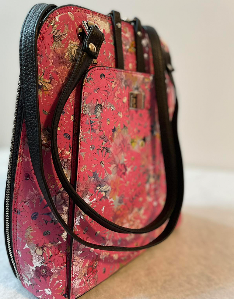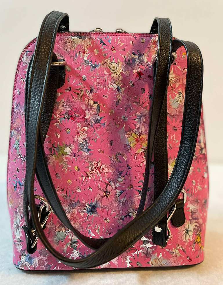 Eleganten nahrbtnik / torbica s cvetličnim motivom DVOJNA KOMBINACIJA; možnost nošenja na rami, roki ter kot nahrbtnik. ZELO elegantna torbica, ki jo lahko v hipu spremenite v nahrbtnik.